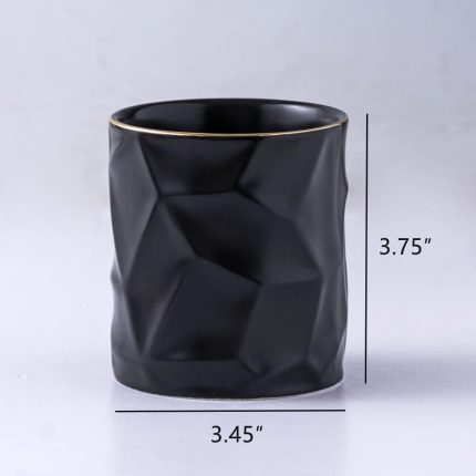 Ceramic Irregular Round Pen Holder For Desk Cute Stand Gold Line Aesthetic Pencil Cup Pot Desk Organizer for Men Women Makeup Brush Holder (Black)