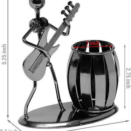 About this item Pen Holder for Desk with Guitar Design:This barrel-shaped pen holder features a finely crafted guitar player figurine,