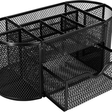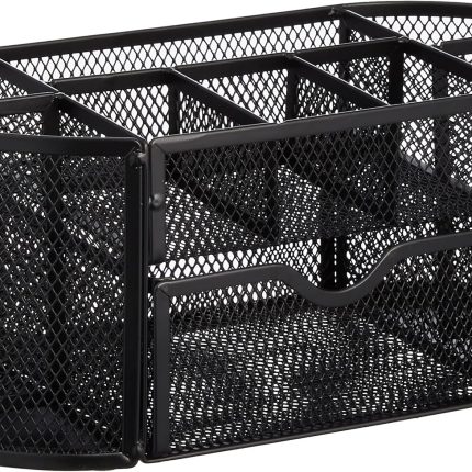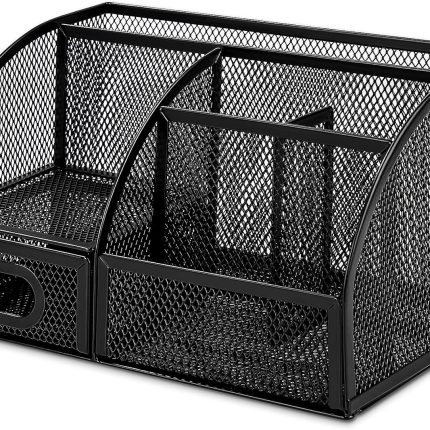 Mesh Desk Organizer with Pen Holder, Pullout Drawer and Office Caddy Storage, 9.25″ x 4.53″ x 3.94″, Black