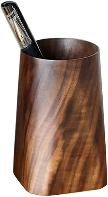 Durable Whole Piece Black Walnut Pencil Wood Pen Holder Wooden Desktop Pencil Cup Office Supplies Organizer Caddy Stand, 75x75x120mm